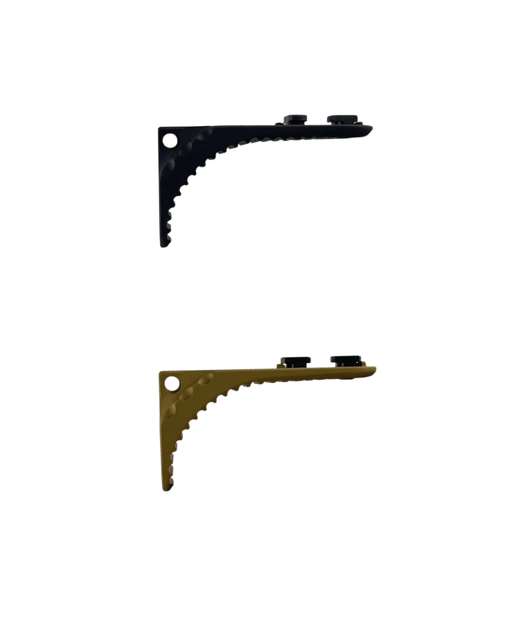 Le Reach est spécialement conçu pour s’adapter à deux emplacements M-LOK tout en ne nécessitant qu’un seul emplacement (le plus en avant) pour son installation. Cette disposition unique permet de le monter sur l’emplacement le plus en avant, tandis que la butée s’étend vers l’arrière d’un emplacement supplémentaire, couvrant ainsi les sections M-LOK obstruées ou inutilisables pour vous offrir un point d’indexation fiable pour votre main d’appui. Par exemple, un bloc de gaz obstruerait l’emplacement de montage le plus favorable, le rendant inutilisable. Grâce au système Reach, vous pouvez l’installer à l’endroit idéal en utilisant la fente située à l’avant.