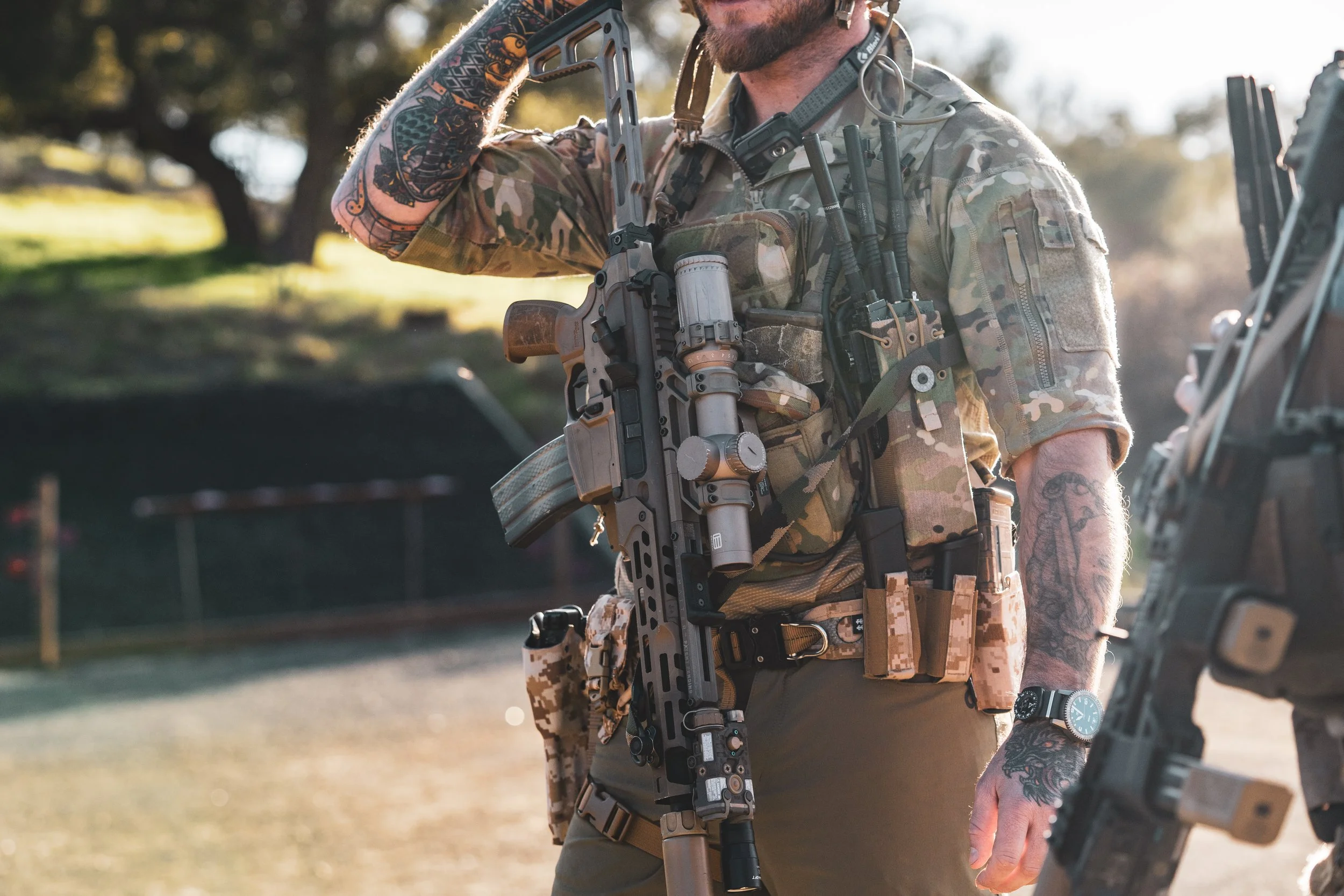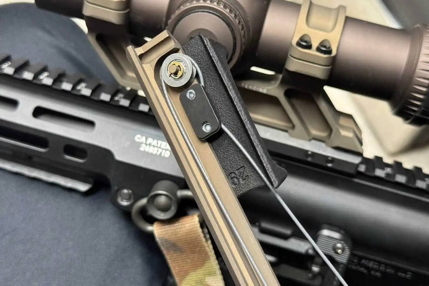 L’axe optique de 49mm (1,93 po) permet de tirer en position verticale, avec un porte-plaques et la visée passive avec vision nocturne.